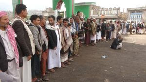 وقفة في جبل معود بريف إب تنديدا بحصار العدوان لمديرية الدريهمي بالحديدة .