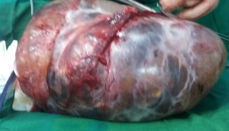 مستشفى المنار التخصصي بإب ينجح في إزالة ورم لأمرأة خمسينية وزنه 7كجم .