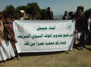 و دعا للمشاركة و الحشد المشرف بذكرى المولد النبوي الشريف في عاصمة المحافظة . و كذلك لجمع قافلة مالية و غذائية مشرفة لأبطال الجيش واللجان الشعبية .