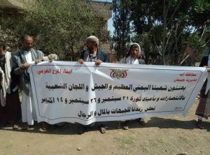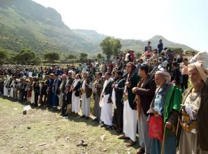 نظم أبناء مديرية حبيش يومنا هذا وقفة مسلحة حاشدة في المربع الغربي لعزل ( التفادي _ السلق _ الذراحي ) تنديدا بجريمة التحيتا و منع سفن المشتقات النفطية و مهنئين الشعب اليمني بانتصارات الجيش واللجان الشعبية و التي كانت آخرها عملية نجران ” نصر من الله” و بالمولد النبوي الشريف .