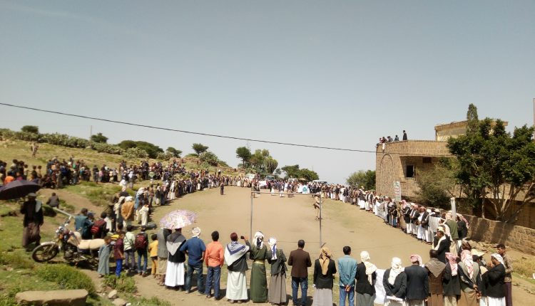 شاهد بالصور : وقفة حاشدة تنديدا بجرائم العدوان و مباركة لعملية نجران بمديرية حبيش بإب .