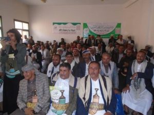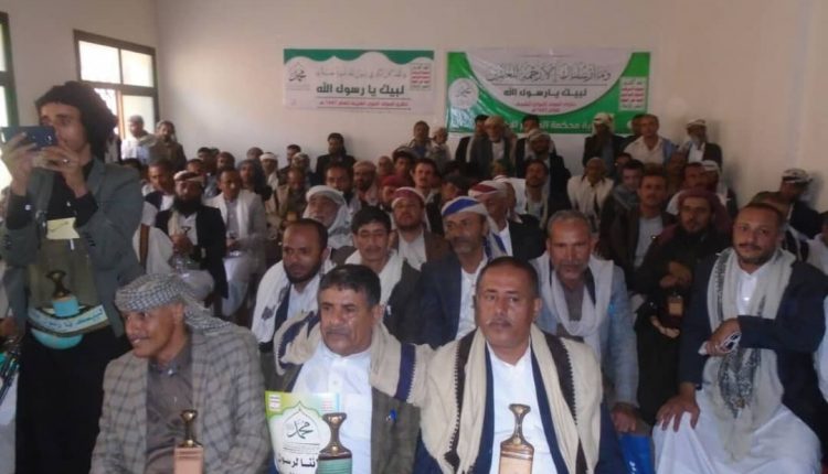ونددوا بجرائم العدوان و ما يرتكبه بحق الشعب اليمني للعام الخامس من المجازر و الحصار و دعوا الى ضرورة توحيد الصف والوقوف ضد العدوان والمرتزقة بكل الوسائل و الاستمرار في التحشيد للجبهات بالمزيد من الرجال و المال واختتمت الفعالية بالتاكيد على ضرورة التحشيد ليوم الاحتفال بعاصمة المحافظة في يوم ذكرى ميلاد رسولنا الاعظم صلوات الله علية وعلى آله الطيبين الطاهرين