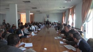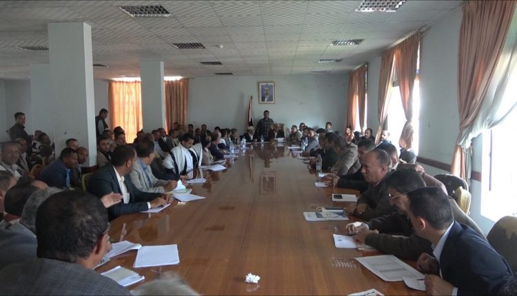 إجتماع موسع بإب يستعرض تقارير الأداء في مكاتب الأوقاف والأشغال والغاز والمياه والطرق .