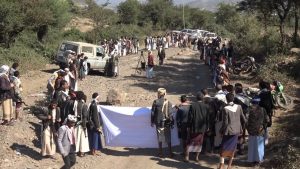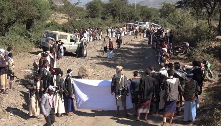 وقفة بريف إب تشيد بإنجازات الدفاعات الجوية والطيران المسير ضد العدوان .