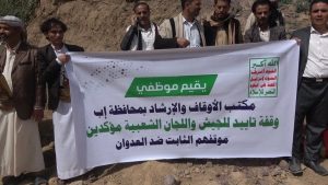 شاهد بالصور : وقفات في مكتب الأوقاف والعدين ومذيخرة بمحافظة إب تأييدا للجيش واللجان .