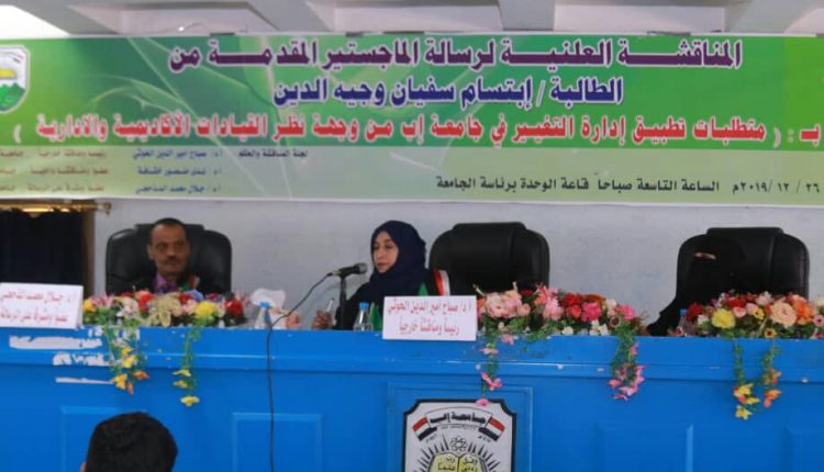 جامعة إب تمنح الباحثة إبتسام وجيه الدين درجة الماجستير في الإدارة وأصول التربية .