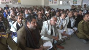 وفي عزلة الثوابي بمديرية جبلة أقيمت اليوم وقفة قبلية للتعبئة العامة ضد العدوان . حيث شدد بيان الوقفة على واجبات المجتمع بمختلف شرائحه مع أسر الشهداء ممن ضحوا بأرواحهم في سبيل الله وتصديا للعدوان وما يحمله من مشروع تدمير وفوضى لهذا البلد .
