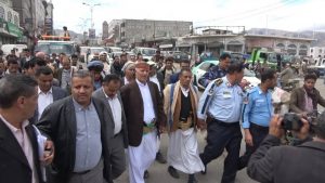 محافظ إب يطلع على مستوى تنفيذ حملة إزالة المخالفات والتشوهات في الشوارع والأسواق .