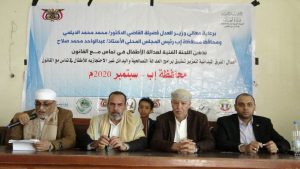 جاء ذلك خلال تدشينه ومعه محافظ إب عبدالواحد صلاح للعام القضائي الجديد ١٤٤٢ هجرية وتدشين أعمال الفرق الميدانية لتعزيز تطبيق برنامج العدالة التصالحية والبدائل غير الاحتجازية للاطفال ، حيث وجه وزير العدل أعضاء السلطة القضائية بالمحافظة على سرعة الفصل والبت في القضايا المنظورة أمام المحاكم والنيابات ومعالجة قضايا المواطنين وإنجازها وعدم تأخيرها حرصا على حقوق الناس ومظالمهم . مشددا على أهمية أن يستشعر الجميع مسؤولياتهم في هذه المرحلة الحساسة التي يمر بها بلدنا في إطار مساعيه لنيل حريته واستقلاله ودحر العدوان .