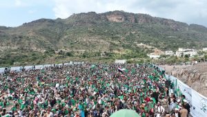 وأكدت الجماهير المحتشدة تأييدهم المطلق لتوجهات قائد الثورة في التغيير الجذري باعتباره ضرورة وطنية ومطلبا شعبيا ملحا لإصلاح مؤسسات الدولة وتحقيق أهداف ثورة الـ21 من سبتمبر المجيدة.