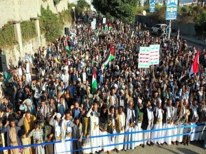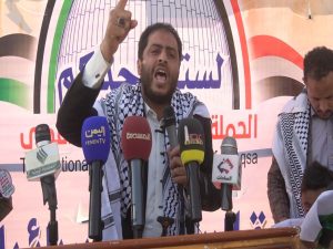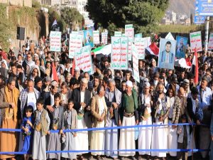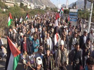 وخلال المسيرة التي تقدمها محافظ المحافظة عبدالواحد صلاح وعدد من أعضاء مجلسي النواب والشورى ووكلاء المحافظة ، اوضح عضو مجلس النواب الدكتور علي الزنم ، في كلمته باسم أبناء المحافظة أن موقف القيادة الثورية والقوات المسلحة اليمنية يعبر عن الإرادة الشعبية اليمنية لنصرة الشعب الفلسطيني .. مشيدا بعمليات القوات المسلحة سواءً في البحرين العربي والأحمر او تلك ما تقوم به القوة الصاروخية والطيران المسير في ضرب الأهداف الصهيونية في الأراضي الفلسطينية المحتلة ..