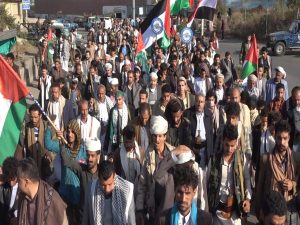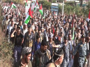 وأعلن المشاركون في بيان مسيرتهم إستعدادهم وجهوزيتهم الكاملة لكل الإحتمالات والسيناريوهات المتوقعة امتثالا لقوله تعالى ” وأعدوا لهم ما استطعتم من قوة ” وان المعركة مع الأمريكيين والإسرائيليين لطالما انتظرها أحرار هذا الشعب العظيم .. مشيدين بما يسطره المجاهدين في ارض الرباط فلسطين .. محذرين دول الجوار من الإنخراط في تحالف امريكا لحماية سفن الصهاينة ..