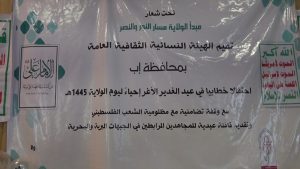 ،، وكانت الهيئة النسائية قد نظمت فعاليتين خطابيتين في منطقة دار الشرف بمديرية المشنة وصهبان في مديرية السياني ، إحياءً لذكرى عيد الغدير ..