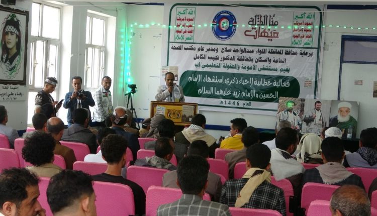 من جانبه أكد الدكتور نجيب الكامل مدير عام مكتب الصحه أهمية التأسي بهاذين الإماميين اللذين تحركا من أجل تصحيح اعوجاج الأمة وإعادتها الى الطريق القويم بعد أن سعى حكام بنو أمية إلى جعل الخلافة مطية وسوطا مسلطا علي رقاب الأمة .. داعيا إلى ضرورة استلهام الدروس والعبر من حياة وثورة الإمامين الحسين وزيد في تعزيز الصمود والثبات في مواجهة أعداء الأمة والتضحية في سبيل الله والحفاظ على ما جاء به الرسول الأعظم – صلى الله عليه وآله وسلم – من قيم إسلامية نبيلة.