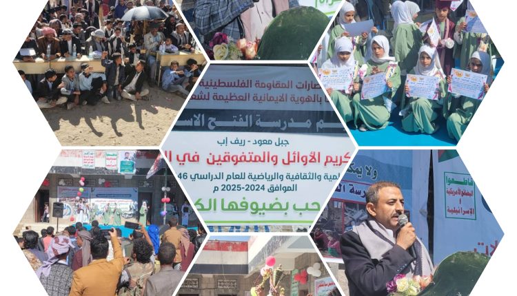 وفيما أوضح مدير المدرسة عادل حمود آل قاسم، أنه في تزامن انتصار غزة واحياء ذكرى الشهيد القائد، كرمت المدرسة أوائل الطلاب والطالبات لعدد 106 في المرحلة الأساسية، وتكريم 16 معلما، وتكريم طلاب الدور الرياضي في دوري يحيى السنوار، بالإضافة إلى تكريم الدفعة الثالثة لخريجي دورات طوفان الأقصي، وأكد أهمية دور المدارس لتنشئة الأجيال القادمة متسلحون في العلم والمعرفة، وتعد أعظم رسالة لتحصينهم بالهوية الإيمانية والثقافة القرآنية، ومن الثقافات المغلوطة .