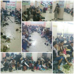 والقيت كلمة باسم العلماء والأكاديمين ألقاها الدكتور محمد الحبيشي أستاذ المذاهب والأديان بجامعة إب سرد فيها جانبا من الصراع والحقد اليهودي للأمة الإسلامية والأطماع والمخططات التي يشتغل عليها اليهود ضد المسلمين ؛ مبينا الدور الذي تلعبه بعض الأنظمة العربية في خدمة الكيان الصهيوني ومنها نظامي آل سعود ونهيان .